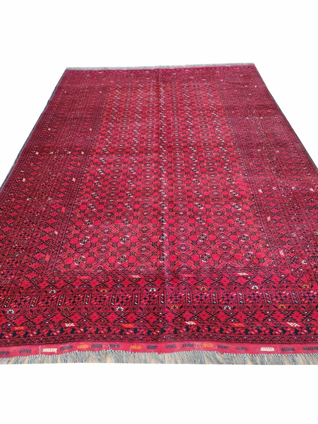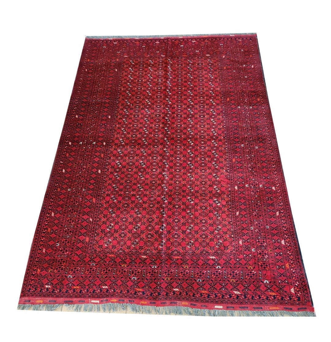 A Turkmen rug or Turkmen carpet or Turkoman carpet is a type of handmade floor-covering textile traditionally originating in Central Asia. It is useful to distinguish between the original Turkmen tribal rugs and the rugs produced in large numbers for export mainly in Pakistan and Iran today. The original Turkmen rugs were produced by the Turkmen tribes who are the main ethnic group in Turkmenistan and are also found in Afghanistan and Iran. They are used for various purposes, including tent rugs, door hangings and bags of various sizes.