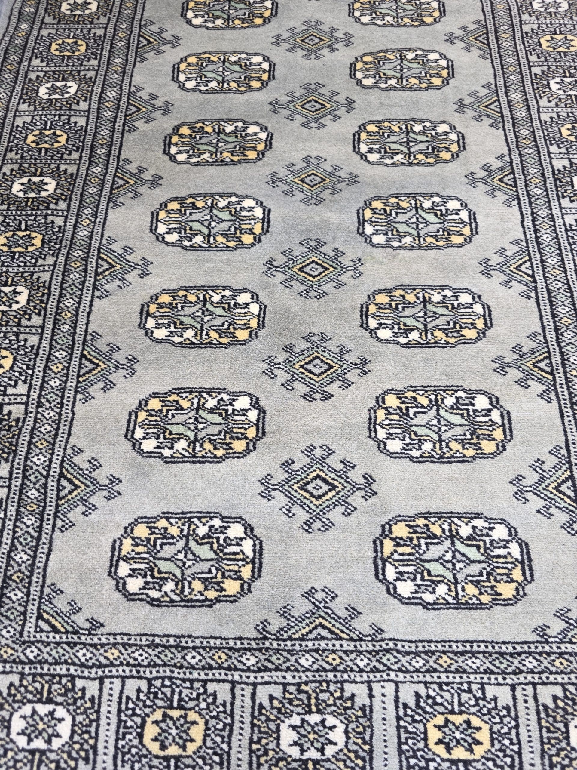 Authentic Hand-knotted Karachi Bokhara Carpet.