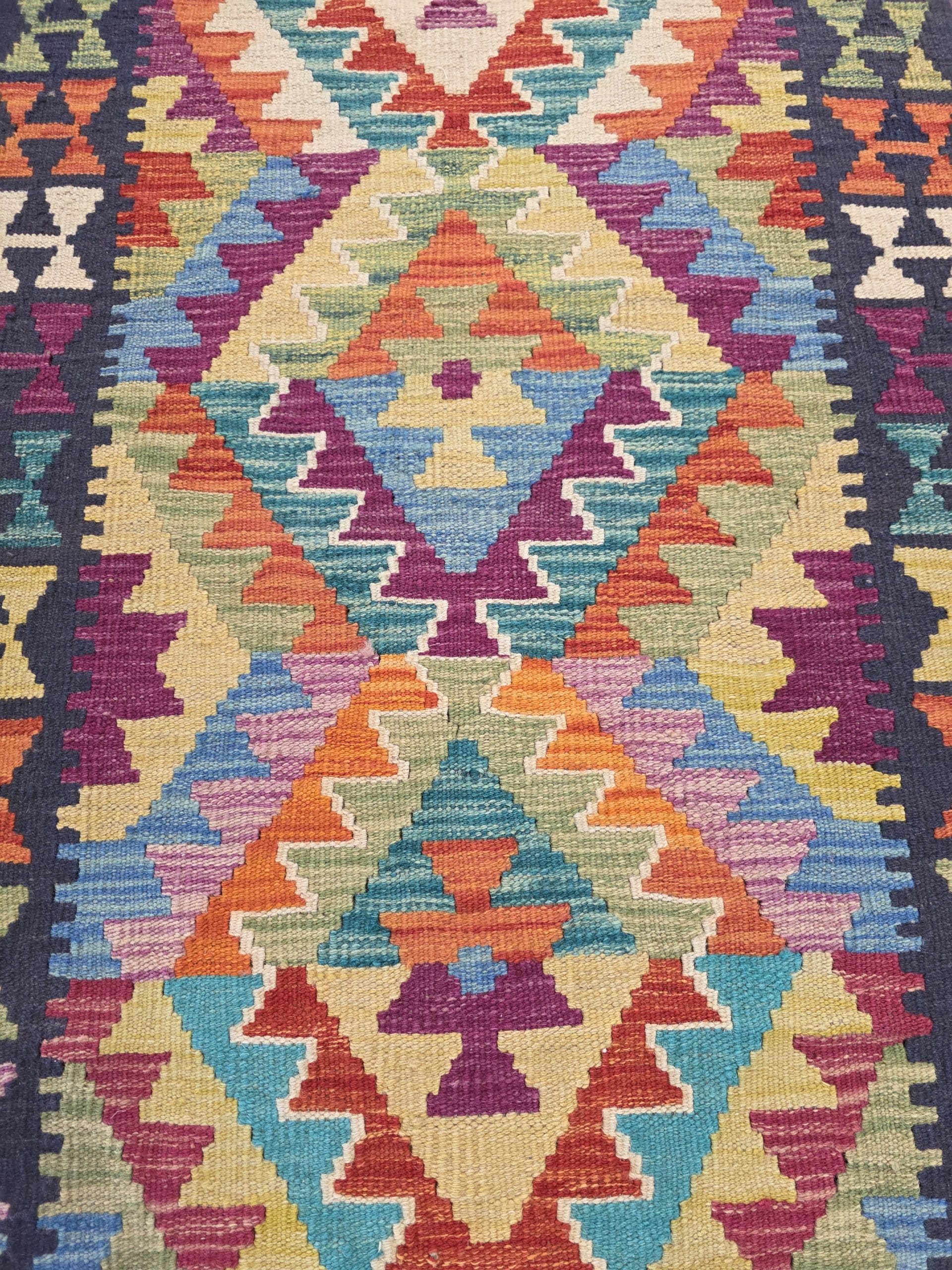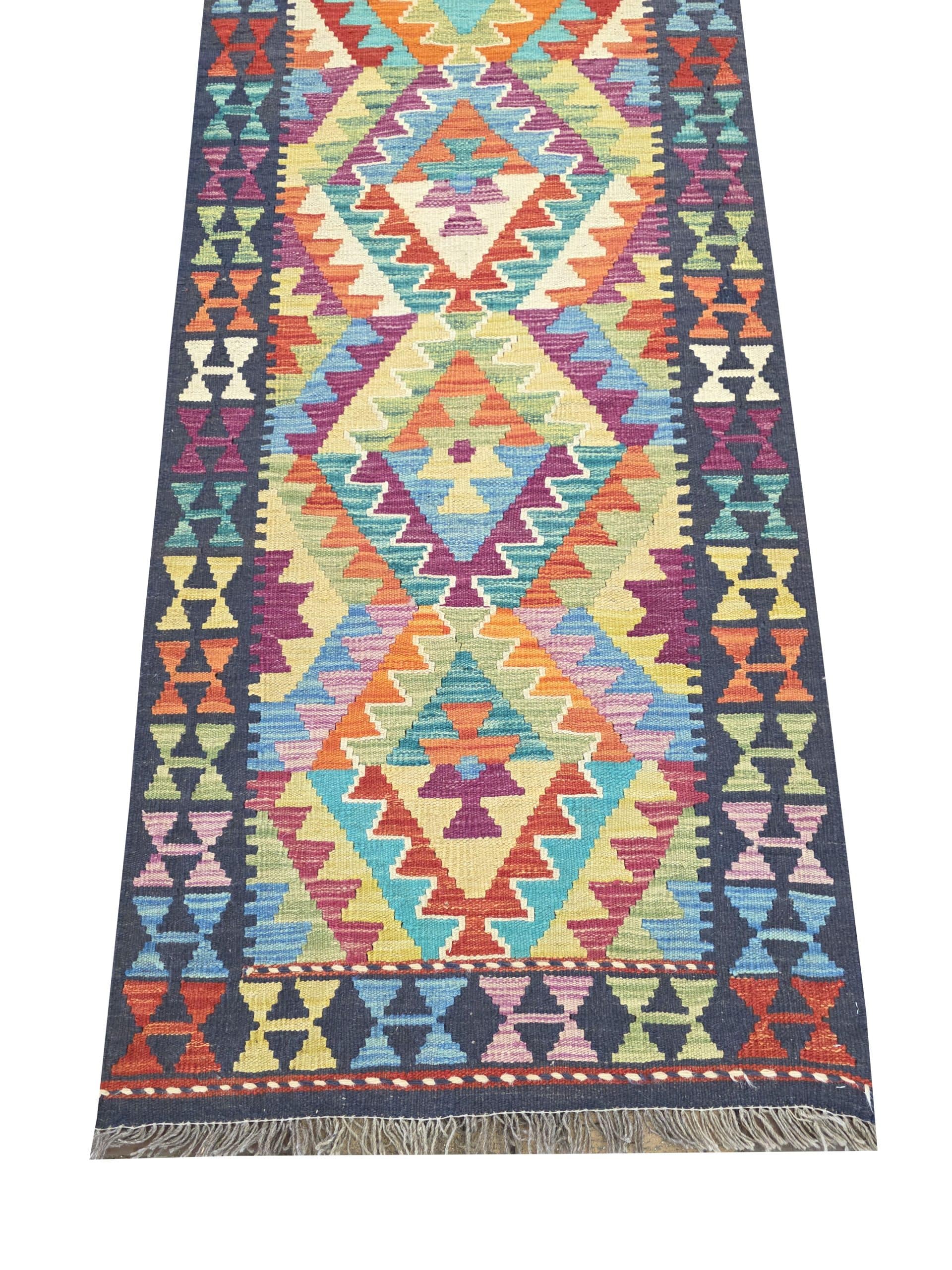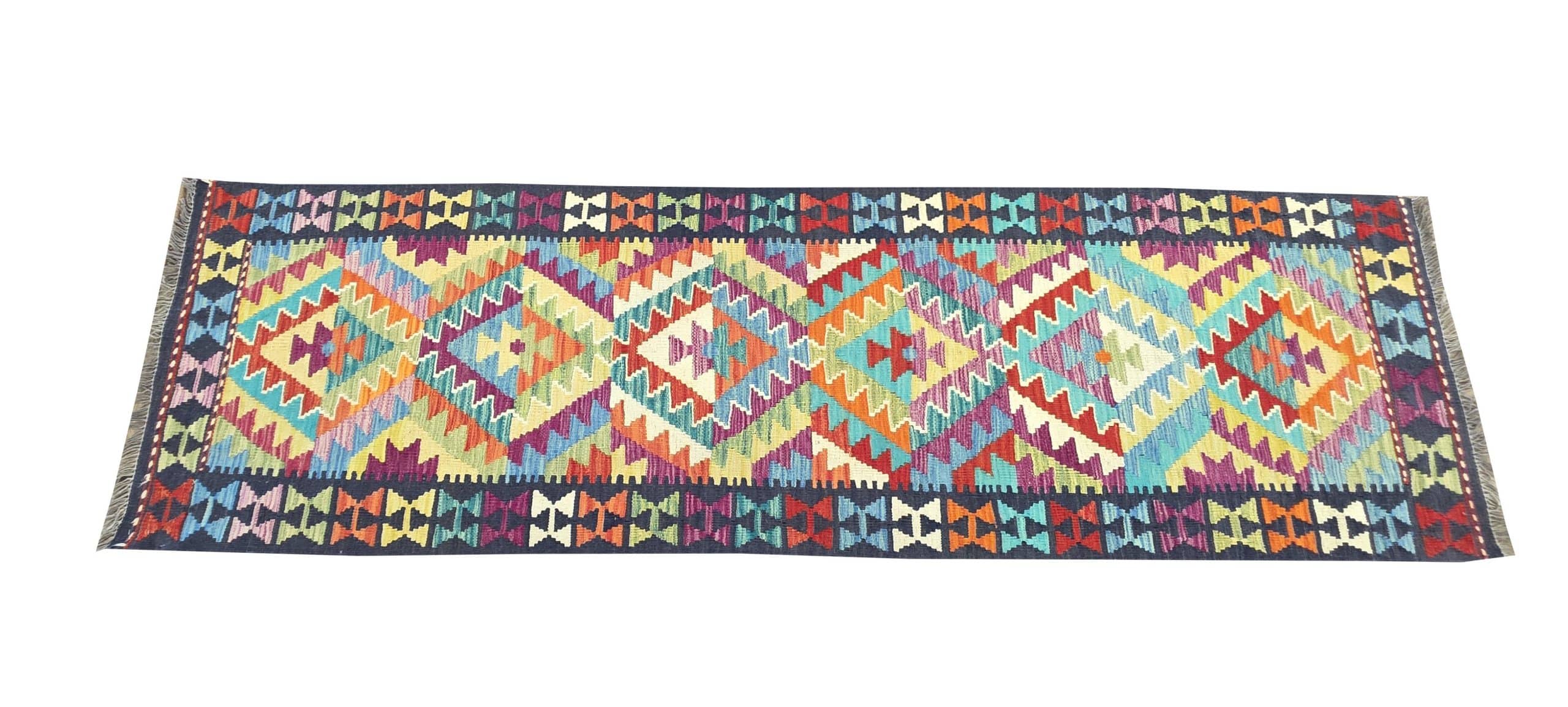 • FINE AFGHAN CHOBI KILIM RUNNER  – A beautiful, Original 100% Wool Hand woven Kilim Runner, made from 100% hand spun Wool, each runner has been individually hand-crafted and when purchased you will be the proud owner of this one and only work of art.