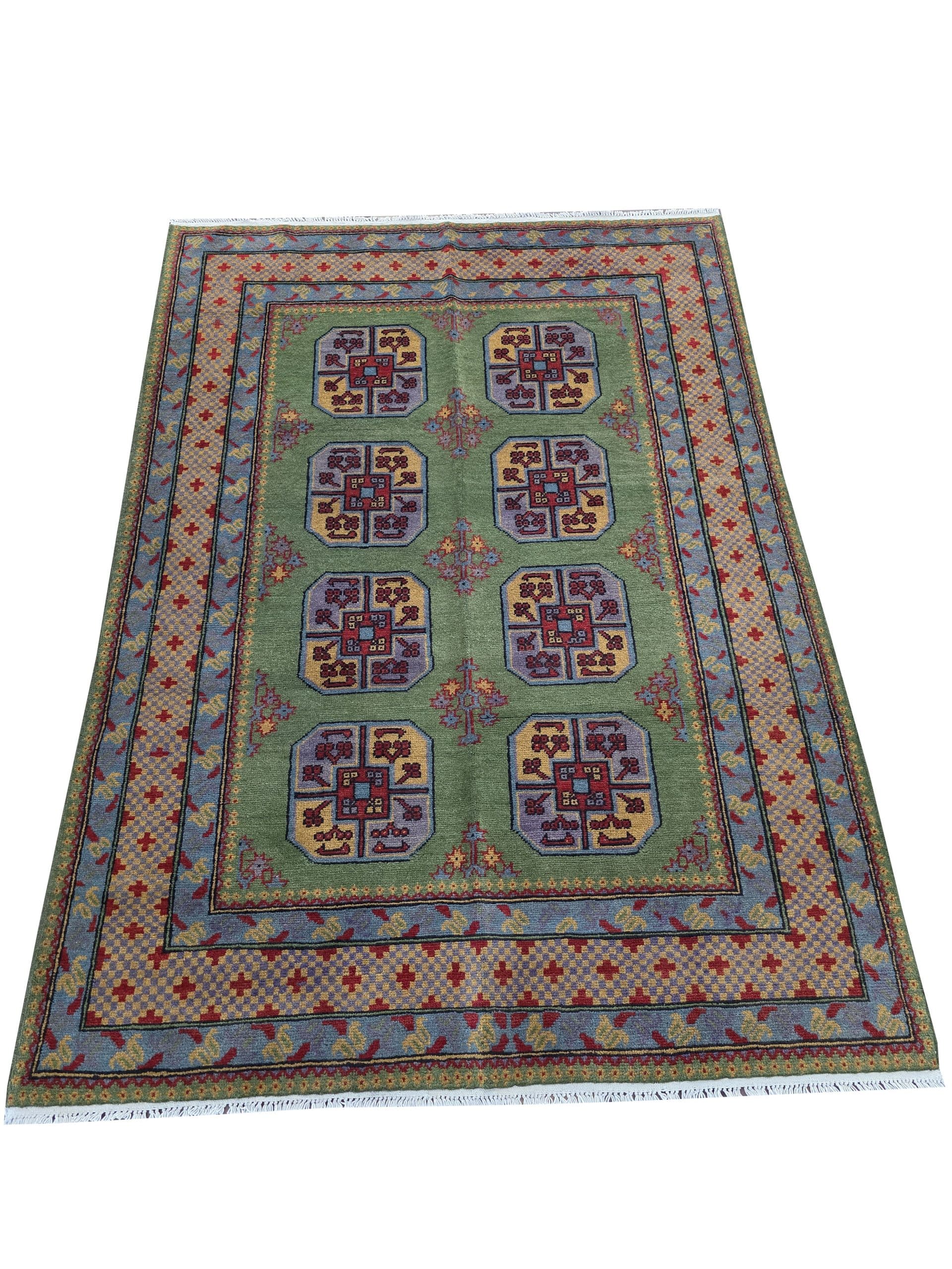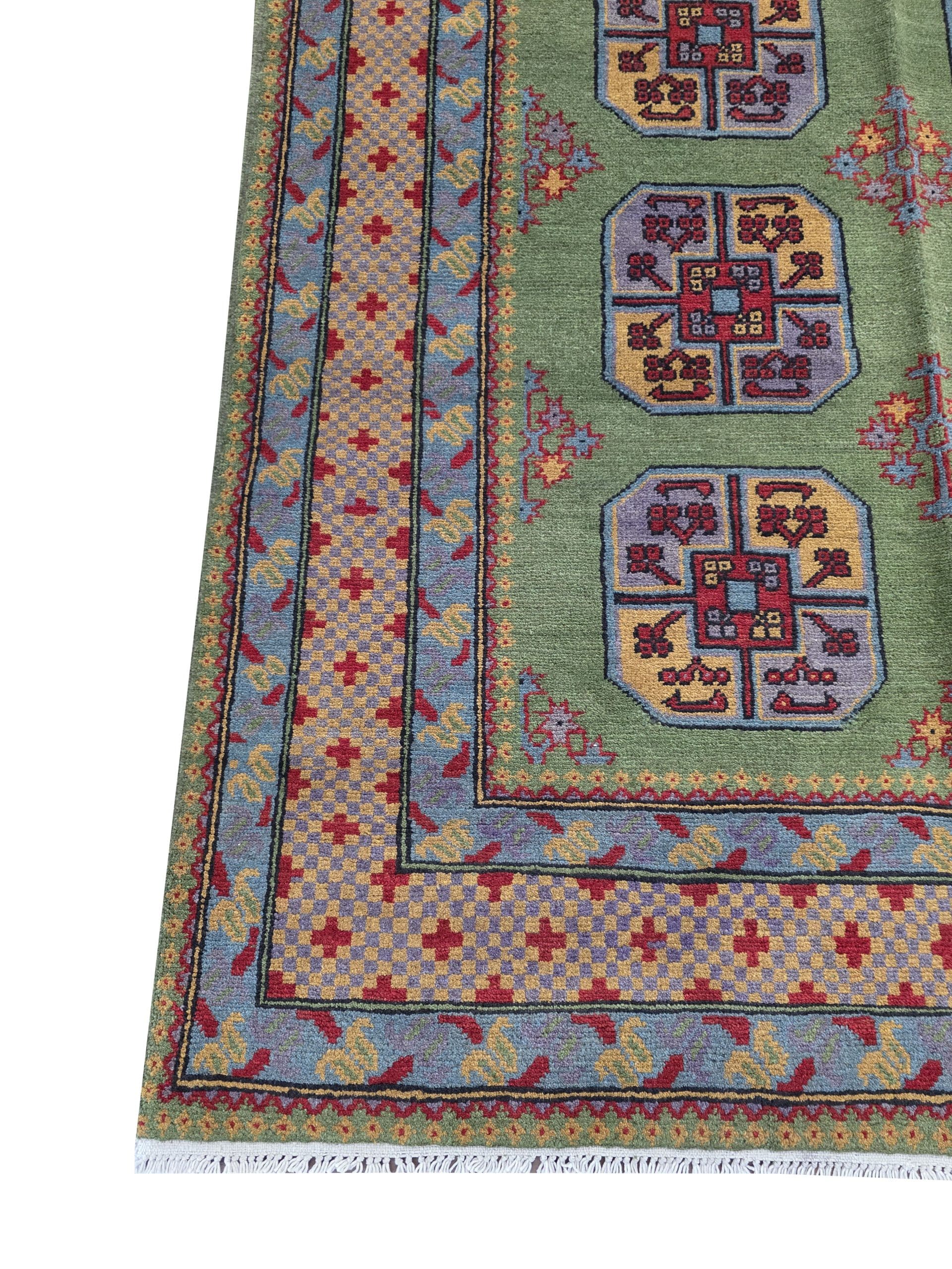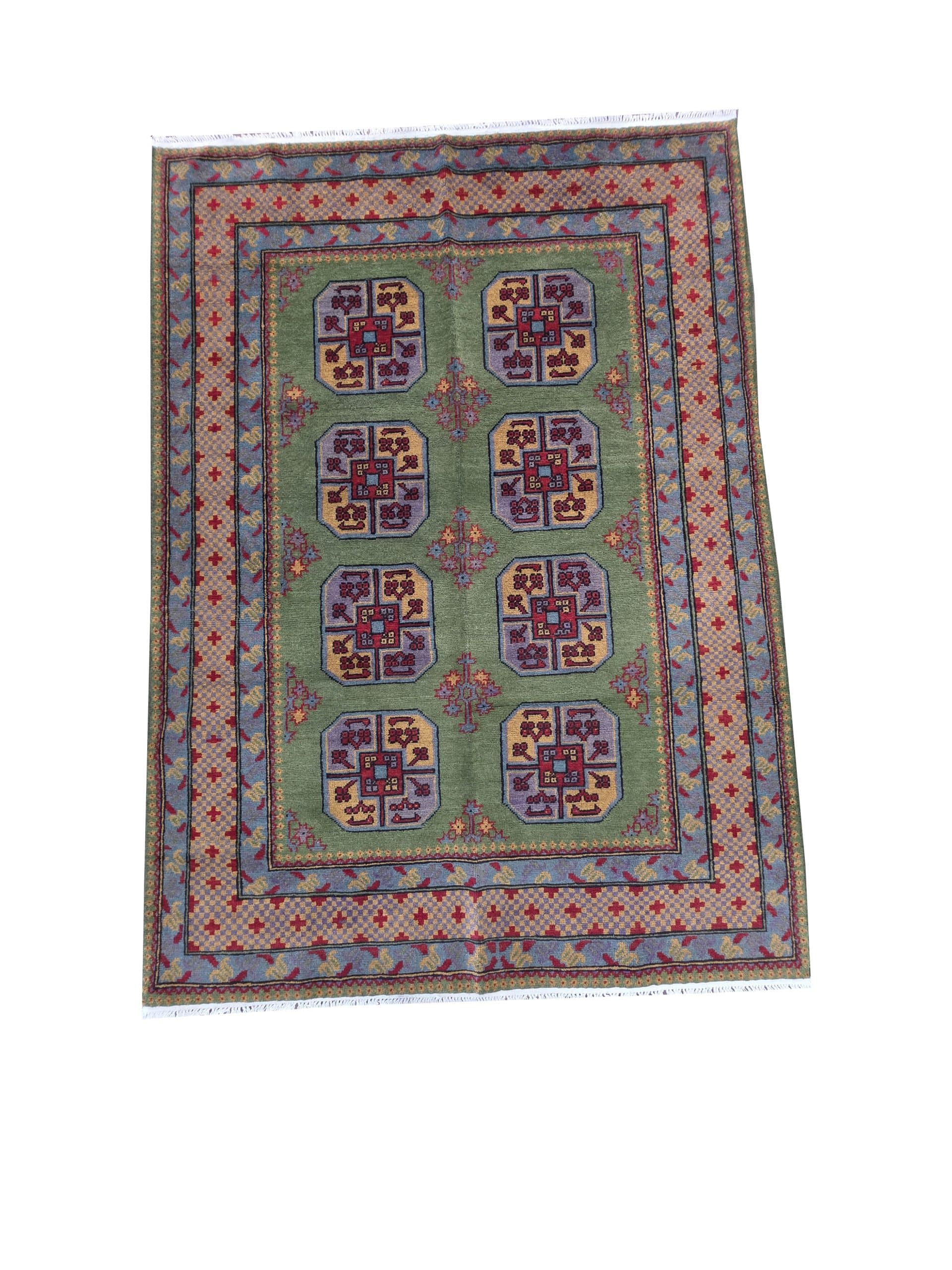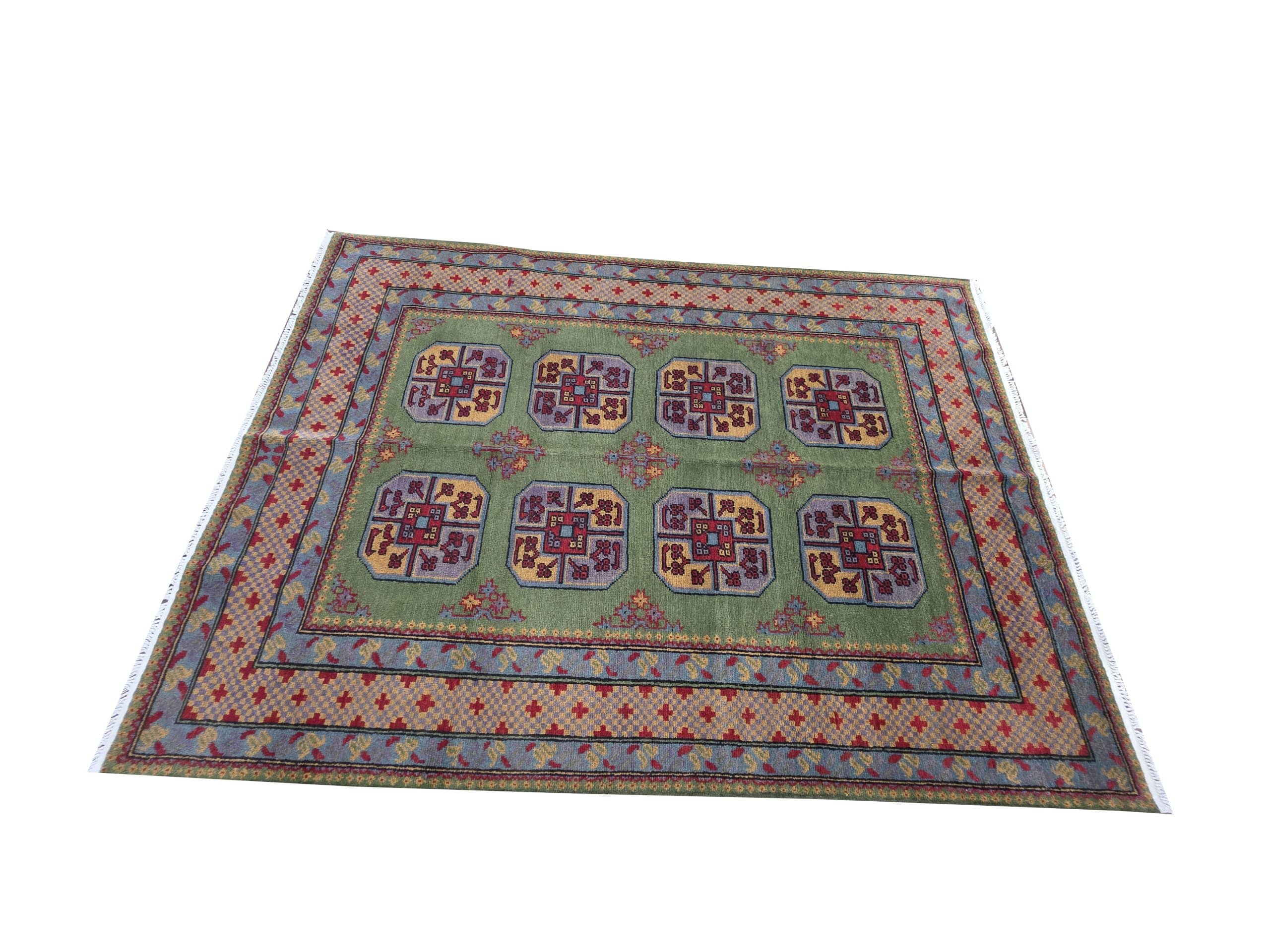 - Red Afghan or Aqcha rugs are simple verision of the Khal Mohammadi rug design. Using locally sourced wool and chemical dyes, the Afghan Reds have a lower knot count than their Khal Mohammadi counterparts and are less introcate as a result. They are woven around the Aq Chah region and between Ankoy and Mazar-i-Sharif in northern Afghanistan. Aqchas are excellent value for money for those looking for a nice handknotted rug that won’t break the bank.Afghan Reds are warm and welcoming. The colours are dark, usually deep reds with dark blue or black used for detail. The detail in the rug can vary but the pattern is almost always one form of repeated columns of ‘gul’ or ‘fil pai’ (elephant prints) adapted from the Ersari and Turkmen weavers’ heritage.