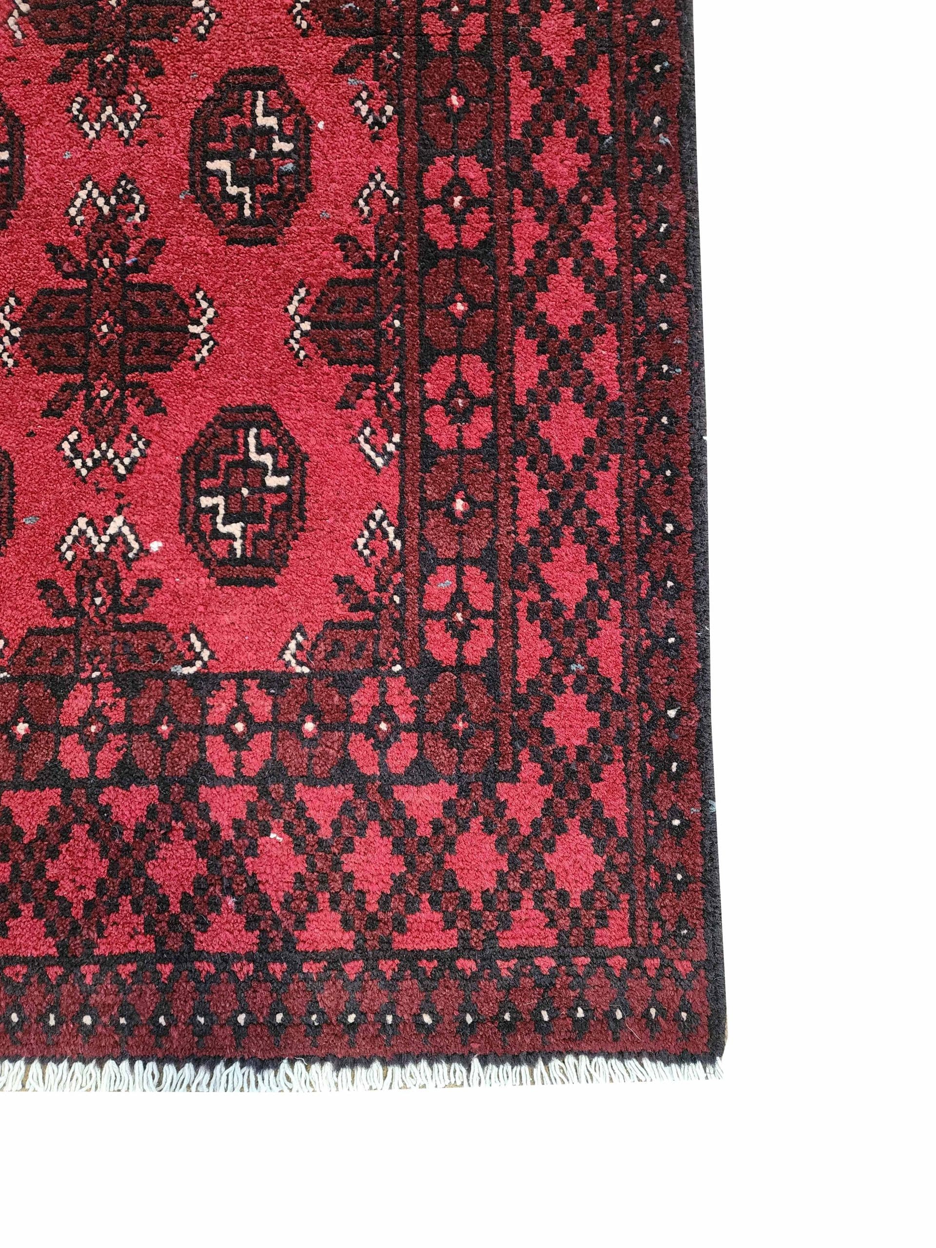 Red Afghan or Aqcha rugs are simple verision of the Khal Mohammadi rug design. Using locally sourced wool and chemical dyes, the Afghan Reds have a lower knot count than their Khal Mohammadi counterparts and are less introcate as a result. They are woven around the Aq Chah region and between Ankoy and Mazar-i-Sharif in northern Afghanistan. Aqchas are excellent value for money for those looking for a nice handknotted rug that won’t break the bank.