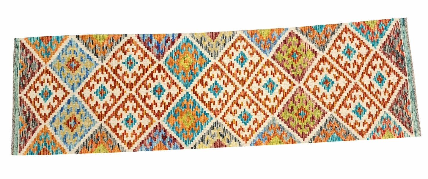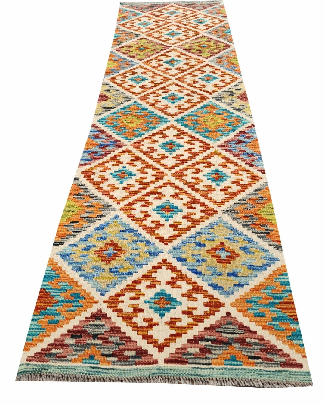 • FINE AFGHAN CHOBI KILIM RUNNER  – A beautiful, Original 100% Wool Hand woven Kilim Runner, made from 100% hand spun Wool, each runner has been individually hand-crafted and when purchased you will be the proud owner of this one and only work of art.