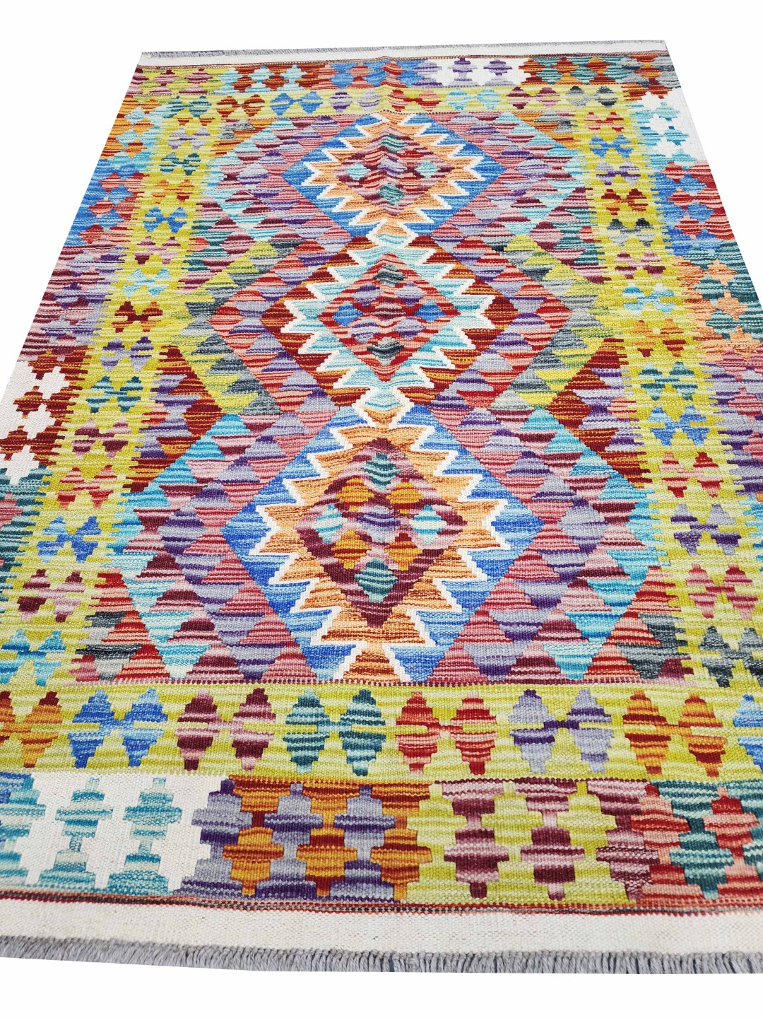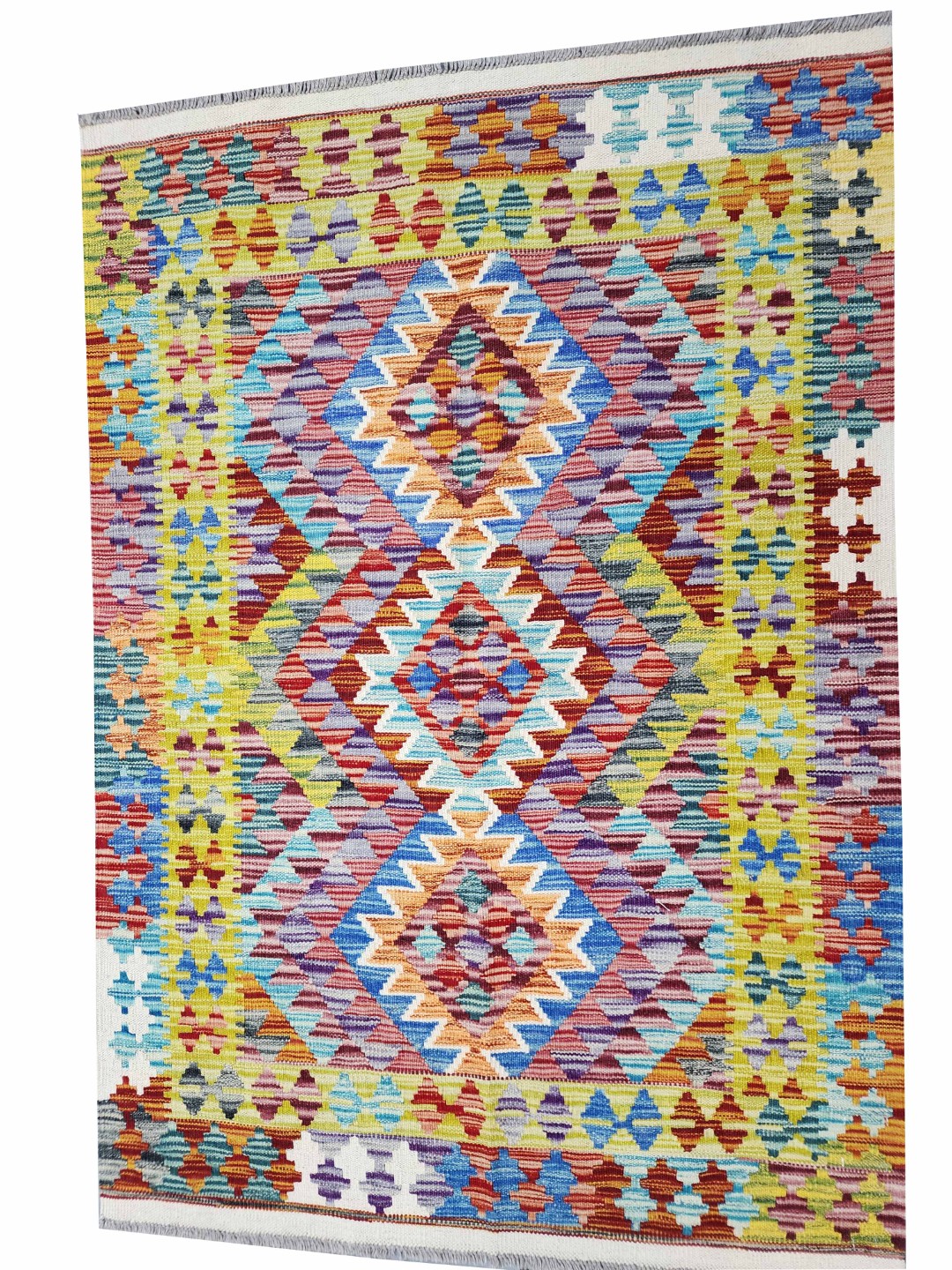 • FINE AFGHAN CHOBI KILIM  – A beautiful, Original 100% Wool Hand woven Kilim Rug, made from 100% hand spun Wool, each kilim has been individually hand-crafted and when purchased you will be the proud owner of this one and only work of art.