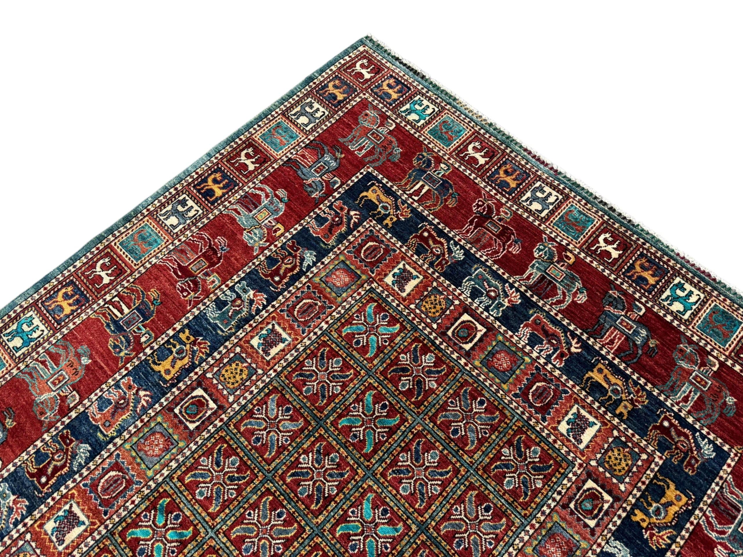 “Chobi” is derived from a Persian word “chob” meaning wood. According to some linguists, the meaning is not fixated to wood but anything that is related to the dyes found in the woods. Furthermore, Chobi Persian carpet has attributes that are not normally found in any other rug. For example, it is hand-knotted and is made on the spindles.