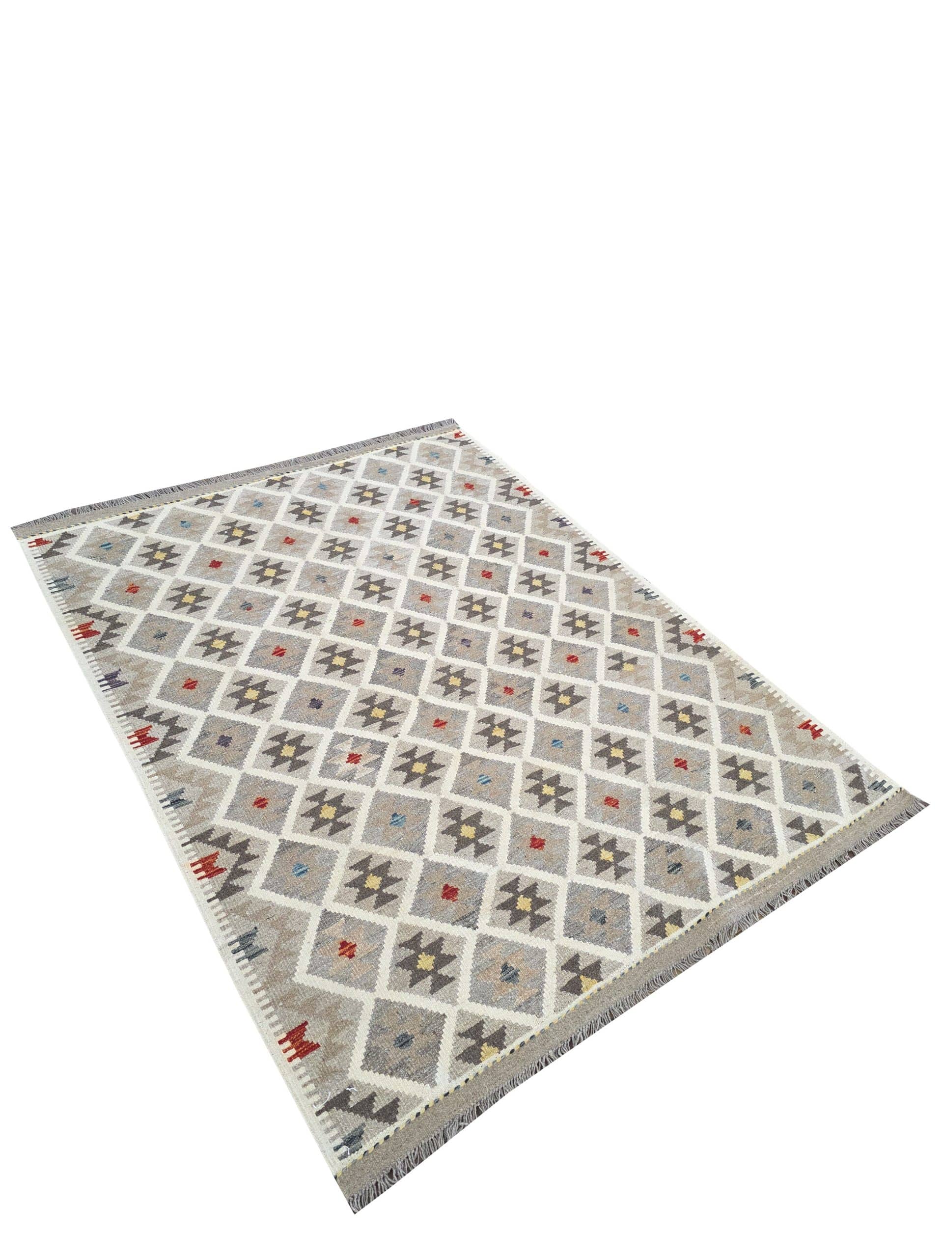 - SUBTLE & MUTED WARM COLOURS – These rugs are often recognised by their warm and subtle colours since they are made using natural organic vegetable dyes unlike many others which are chemical dyes but also by their geometric tribal pattern. Woven with Wool and with fringes on both ends,