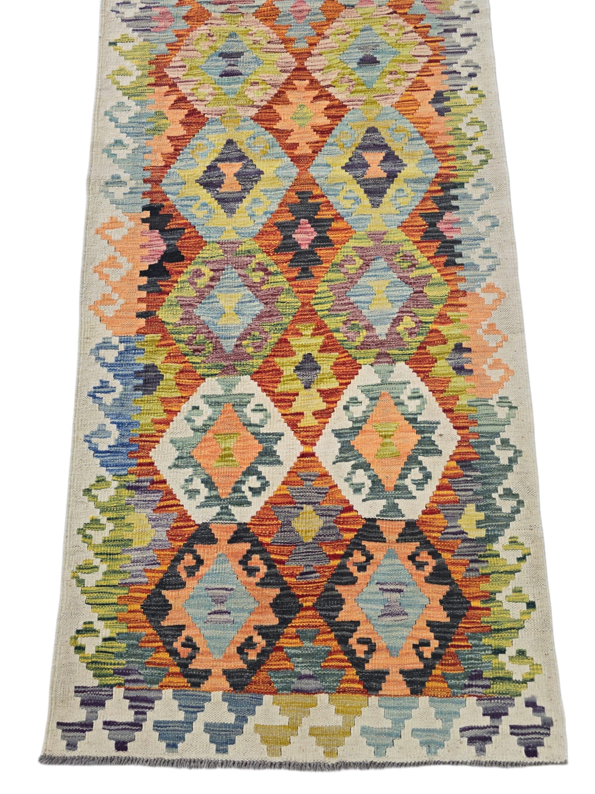 • FINE AFGHAN CHOBI KILIM  – A beautiful, Original 100% Wool Hand woven Kilim Rug, made from 100% hand spun Wool, each kilim has been individually hand-crafted and when purchased you will be the proud owner of this one and only work of art.