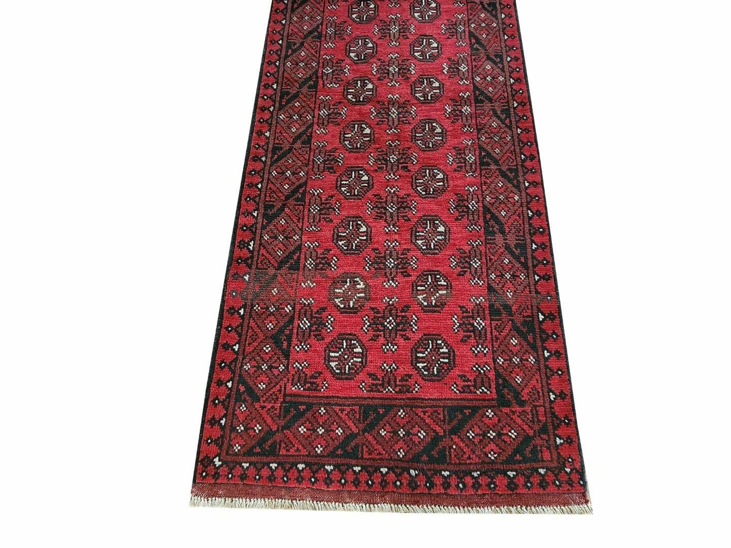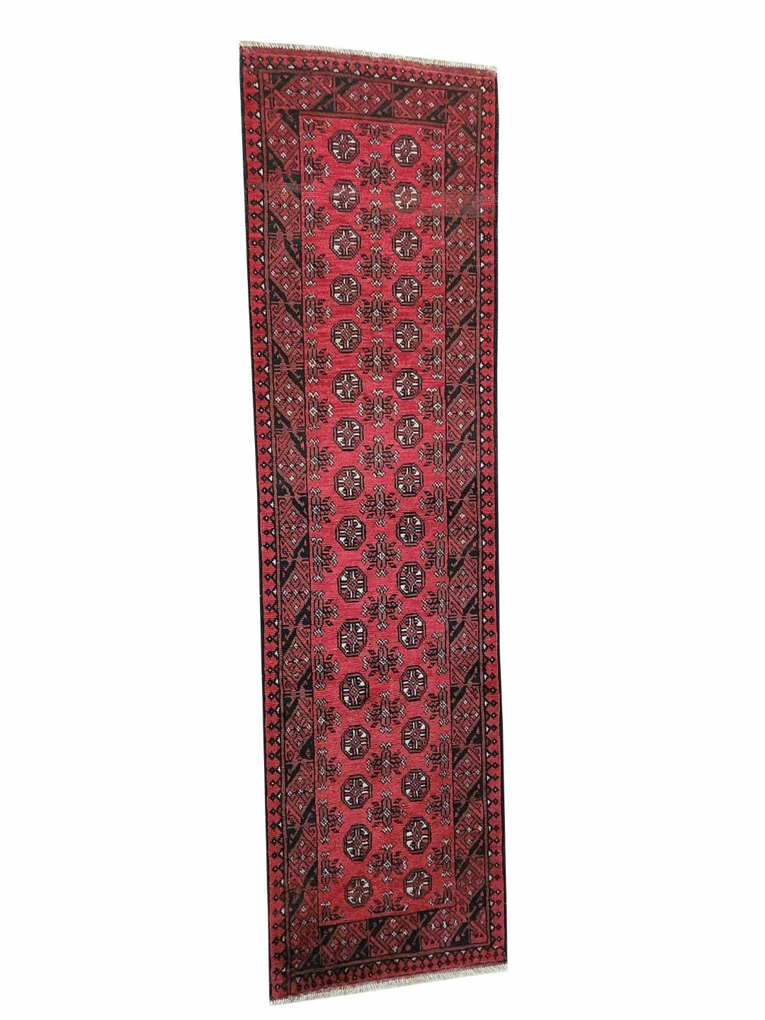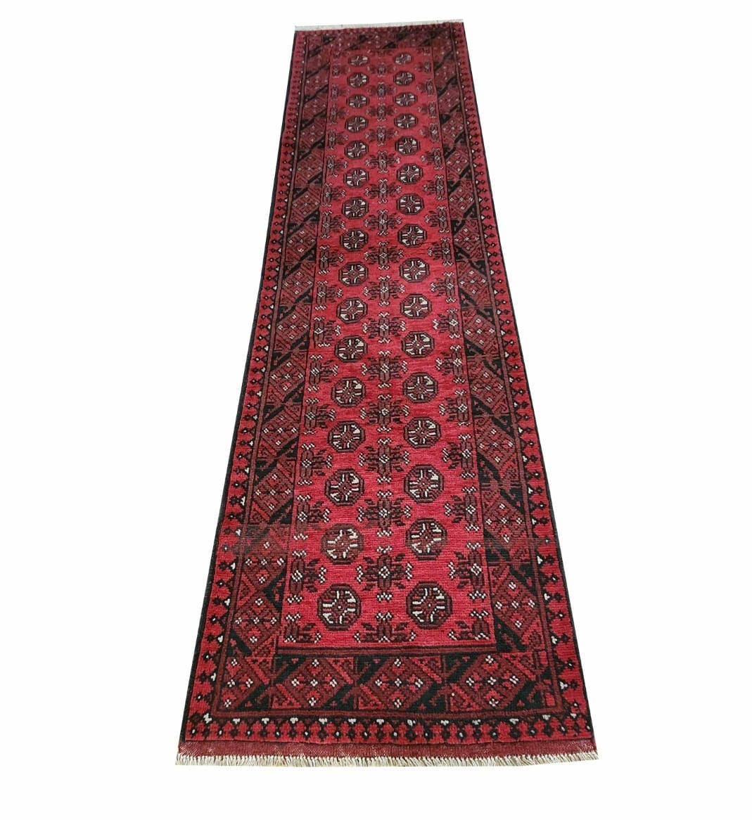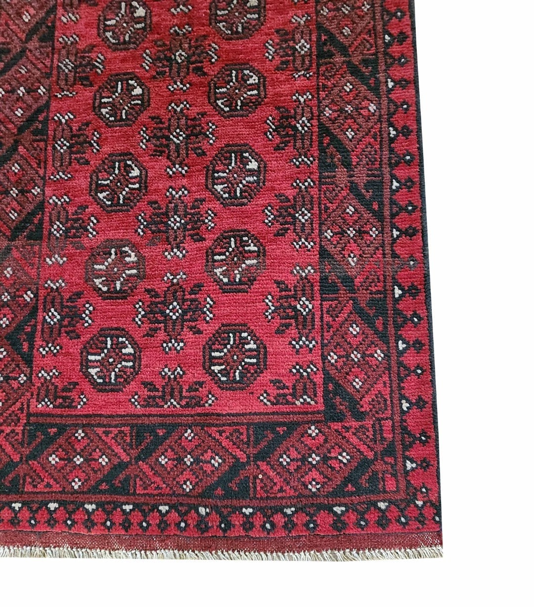 Red Afghan or Aqcha rugs are simple verision of the Khal Mohammadi rug design. Using locally sourced wool and chemical dyes, the Afghan Reds have a lower knot count than their Khal Mohammadi counterparts and are less introcate as a result. They are woven around the Aq Chah region and between Ankoy and Mazar-i-Sharif in northern Afghanistan. Aqchas are excellent value for money for those looking for a nice handknotted rug that won’t break the bank.