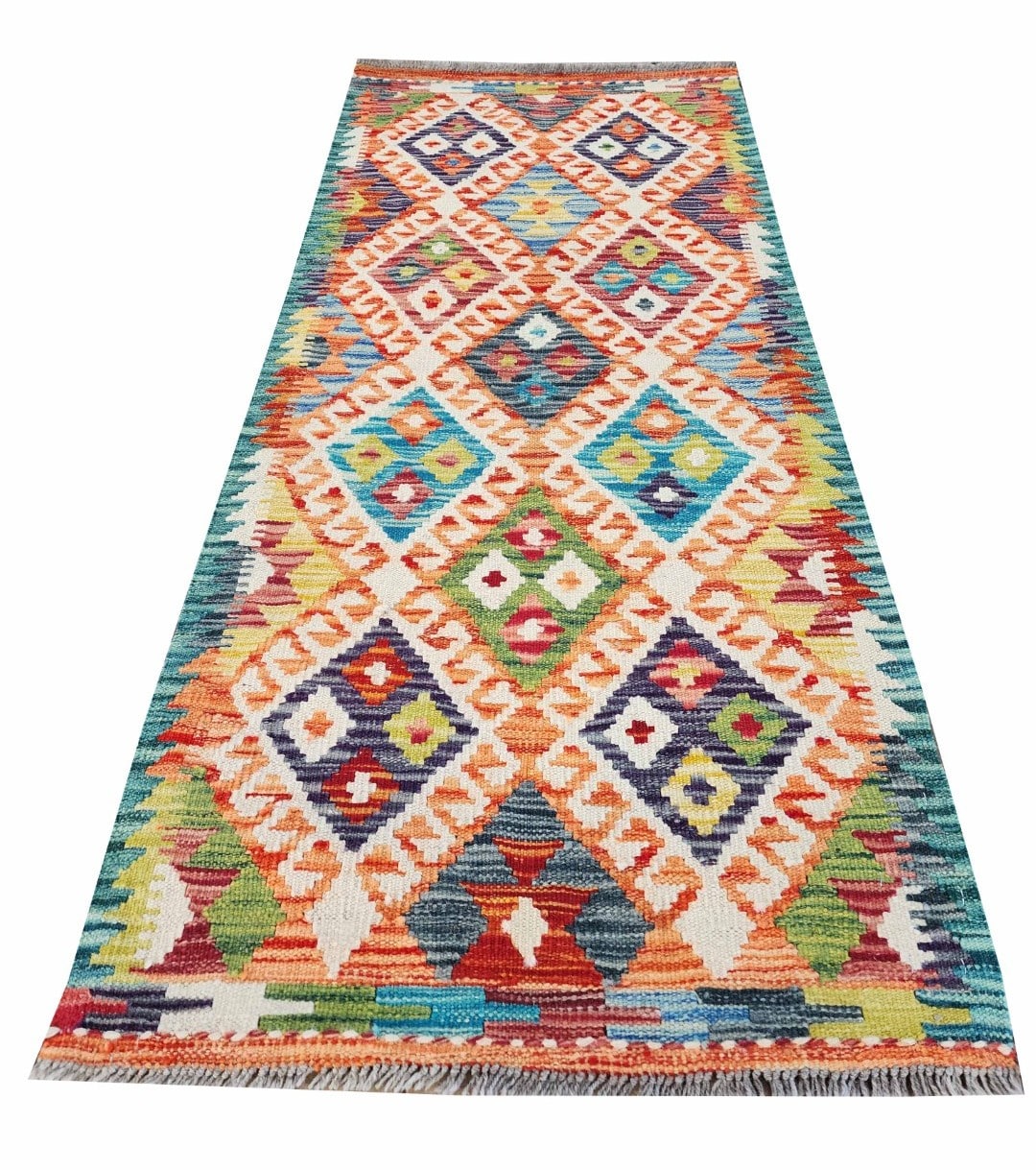 • FINE AFGHAN CHOBI KILIM RUNNER  – A beautiful, Original 100% Wool Hand woven Kilim Runner, made from 100% hand spun Wool, each runner has been individually hand-crafted and when purchased you will be the proud owner of this one and only work of art.
